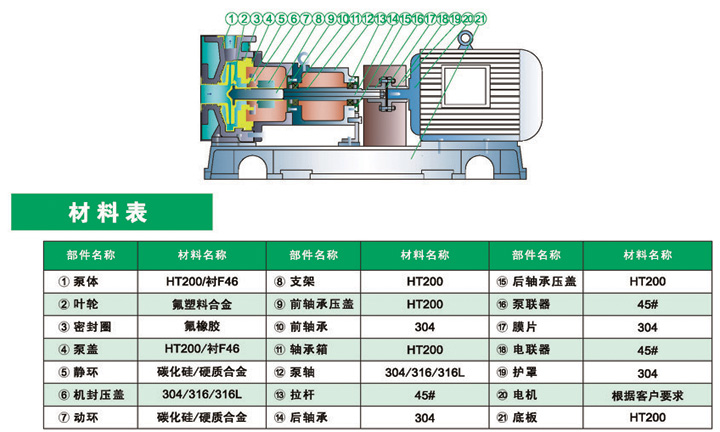4.軸封選用****的外裝式波紋管機(jī)械密封,不用拆卸即可調(diào)整機(jī)封,對(duì)磨的密封面可選配:碳化硅、無(wú)壓燒結(jié)碳化硅、陶瓷、四氟、硬質(zhì)合金等材料,以達(dá)到輸送各種介質(zhì)的要求,保證了機(jī)封的使用壽命。